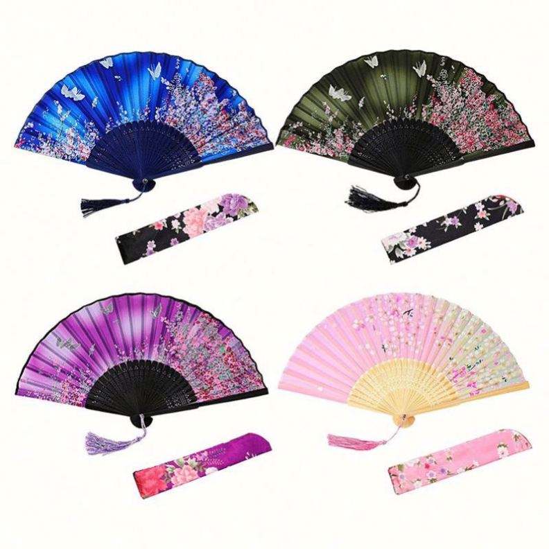 พัดไม้ไผ่พับได้แบบถือด้วยมือ พร้อมผ้าไหม สำหรับงานปาร์ตี้ งานแต่งงาน ของขวัญ ตกแต่งผนัง ดีไซน์ Ds พัดแบบถือ