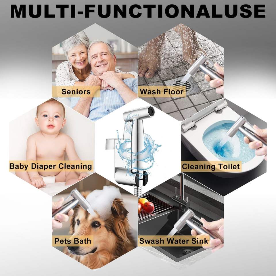 ชุดหัวฉีดชำระแบบพกพาสำหรับโรงแรมทันสมัย ผลิตจากเหล็กเป็นมิตรกับสิ่งแวดล้อม 4 ชิ้น พร้อมหัวฉีดชำระและฝักบัว