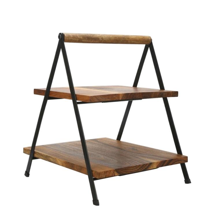 แท่นโชว์เค้กทำจากไม้สำหรับตกแต่งทำด้วยมือ2ชั้นสำหรับบ้านโรงแรมร้านอาหาร-ที่วางบนโต๊ะอาหาร