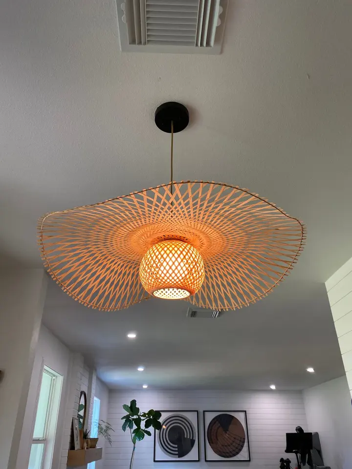 โคมไฟระย้าถักทำมือ,โคมไฟระย้าทำจากไม้ไผ่คุณภาพสูงสำหรับตกแต่ง