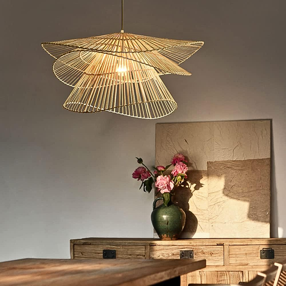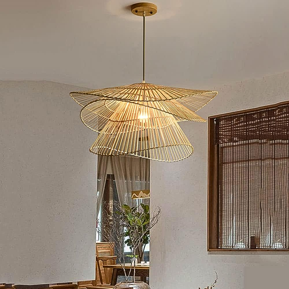 โคมระย้าทอหวายและไม้ไผ่ถักด้วยมือขนาดที่กําหนดเองสําหรับห้องนั่งเล่นห้องรับประทานอาหารและห้องนอนความสง่างามแบบชนบท