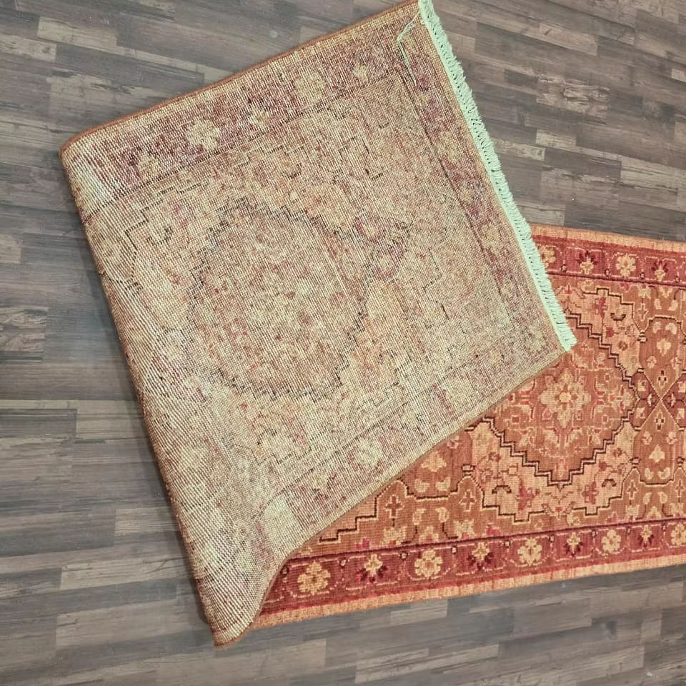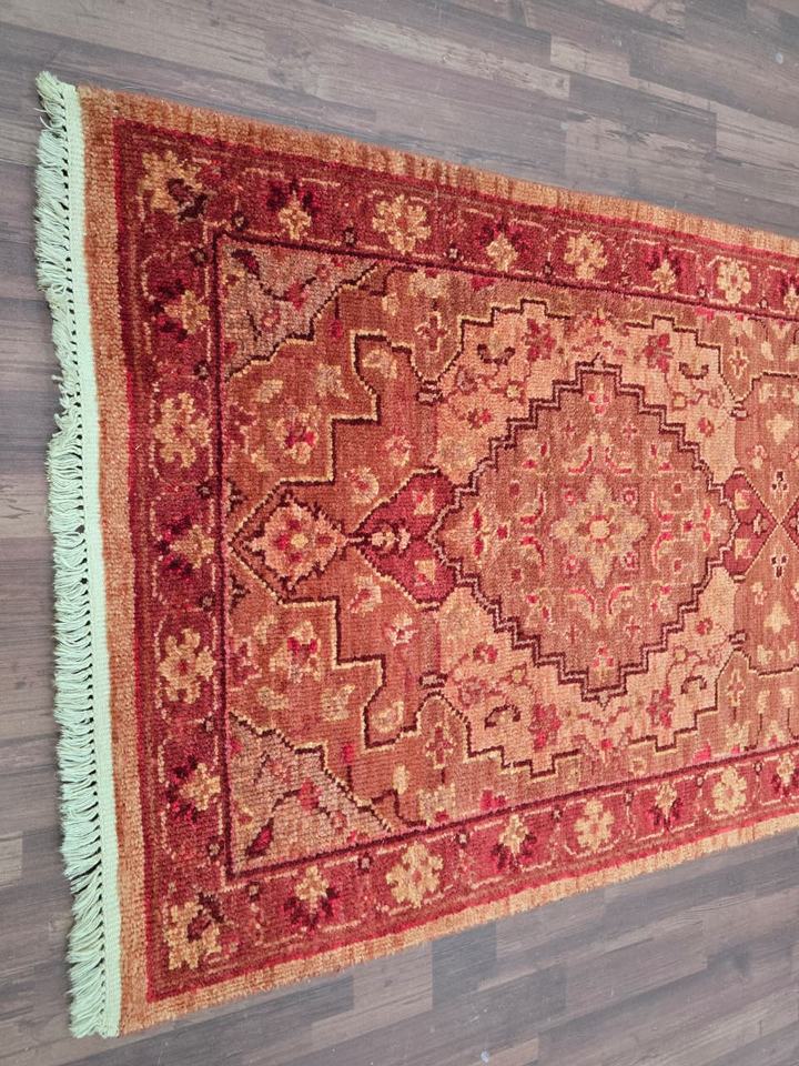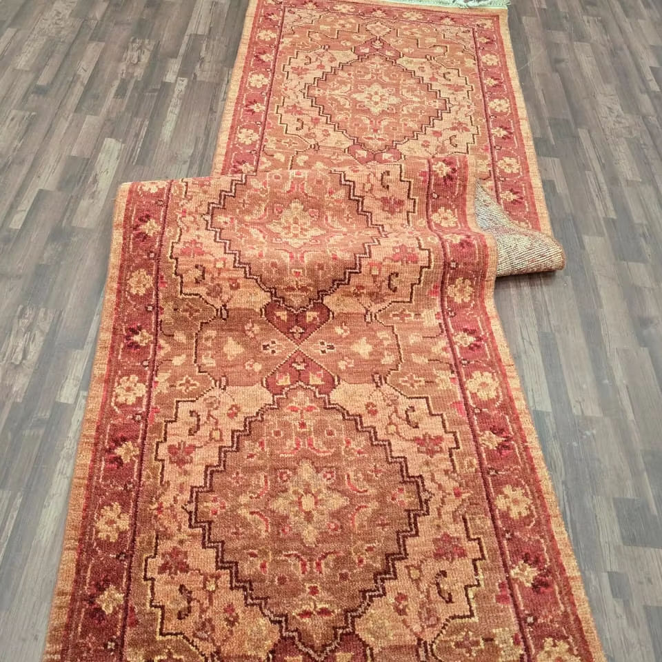 พรมนักวิ่ง oushak แนววินเทจแบบถักมือนุ่มสีพาสเทลสีเขียวและสีพีชดีไซน์ลายดอกไม้แบบดั้งเดิมสำหรับห้องนั่งเล่นห้องนอนโรงแรม