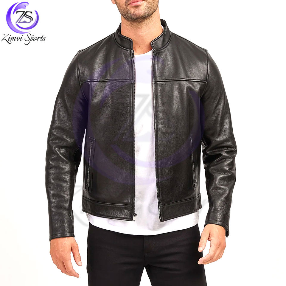 แจ็กเก็ตหนังสำหรับผู้ชายเสื้อแจ็กเก็ตหนังสำหรับฤดูหนาวแบบมีซิปเต็มกระเป๋าด้านข้างดีไซน์ไม่ซ้ำใคร