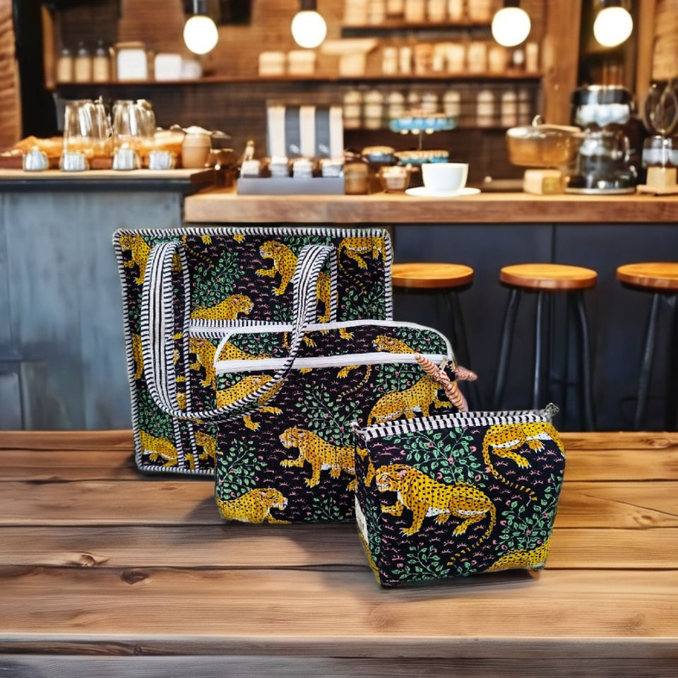 กระเป๋าผ้าคอตตอนใส่ของทำมือลายบล็อกสีทึบมีซิปแฟชั่นฤดูใบไม้ผลิฤดูร้อน