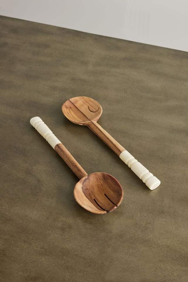 Wood Bone Salad Server Set