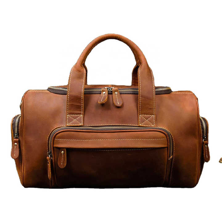 กระเป๋าทรงดัฟเฟิลกระเป๋าเดินทางทำจากหนังของผู้ชายความจุขนาดใหญ่ออกแบบได้ตามที่ต้องการ