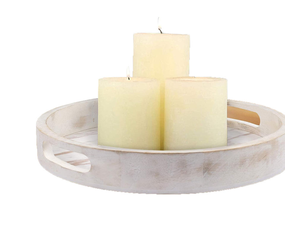 ชุดถาดไม้มะม่วงทรงกลมสำหรับเสริฟและตกแต่ง2ถาดไม้มะม่วงสีขาว