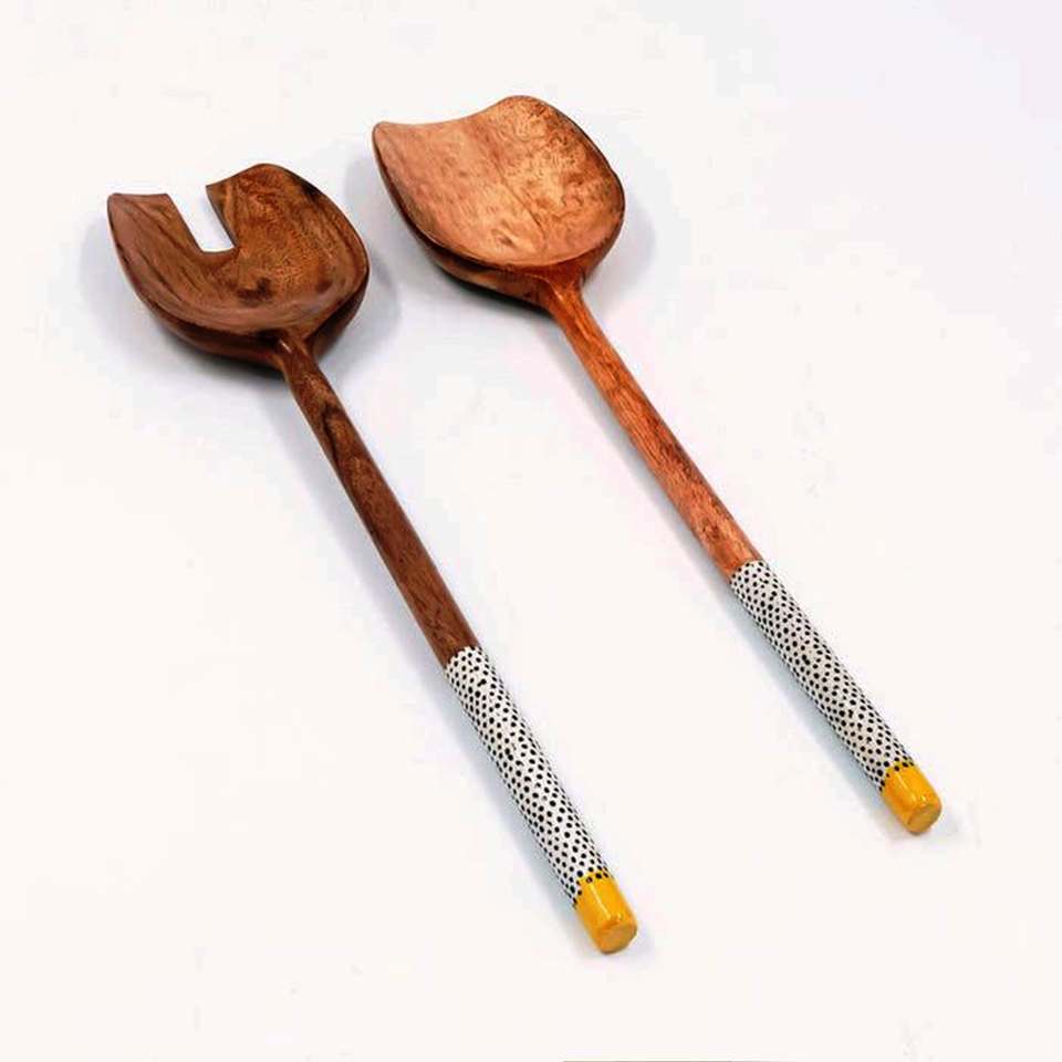 ชุดช้อนส้อมสลัดทำมือเคลือบเรซินรักษ์โลก ใช้กับเครื่องล้างจานได้ ทันสมัย สำหรับใช้ในครัวเรือน ผลิตในอินเดีย