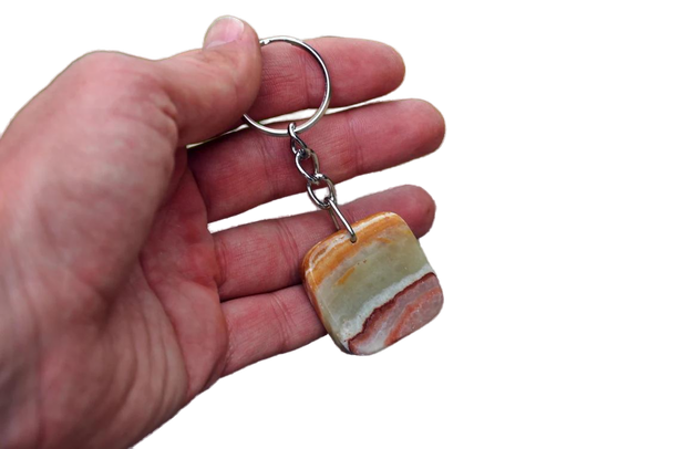 พวงกุญแจหินอ่อนโอนิกซ์สีเขียวหลายสี
