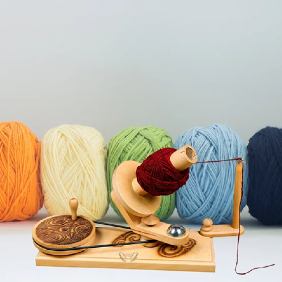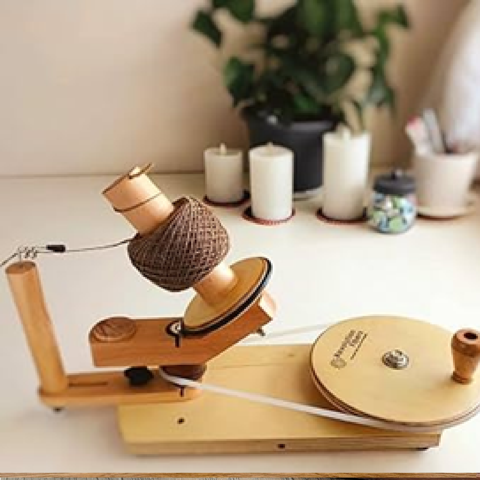 เครื่องม้วนด้ายทำจากไม้อินเดียแบบใช้มือหมุนเพื่อม้วนไหมพรมชุดถักไหมพรมได้รวดเร็ว