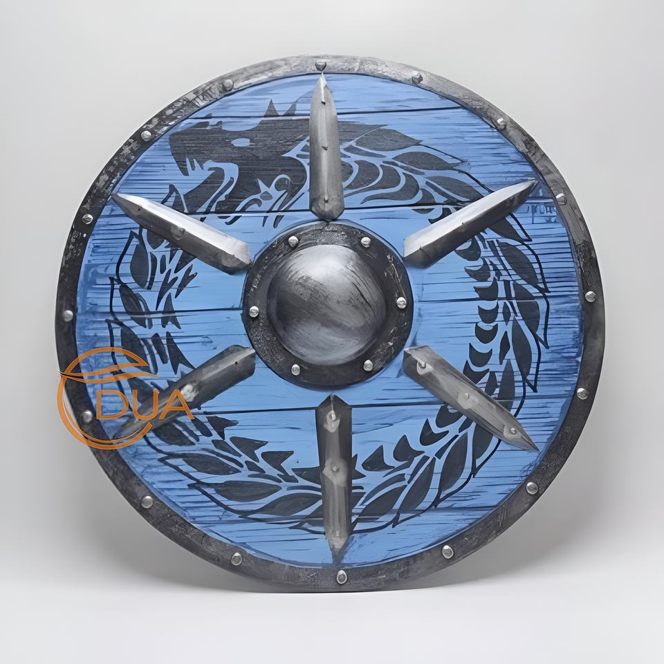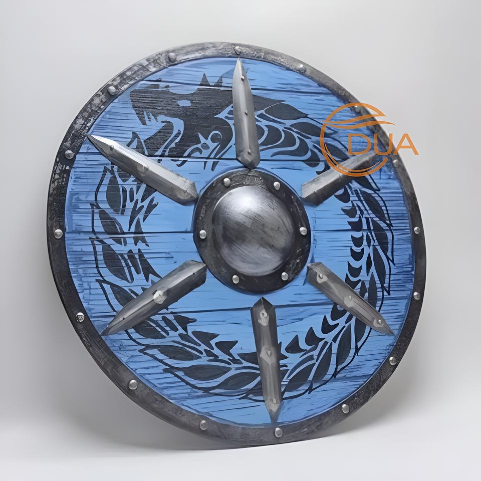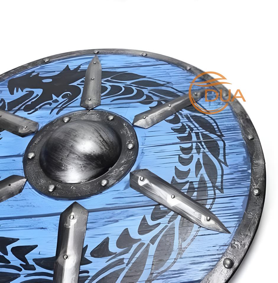 ภาพวาดด้วยมือ24 "โล่ไวกิ้งนอร์สยุคกลางลายมังกรพร้อมการต่อสู้ที่สมบูรณ์แบบสำหรับการตกแต่งคอสเพลย์หรือผนัง