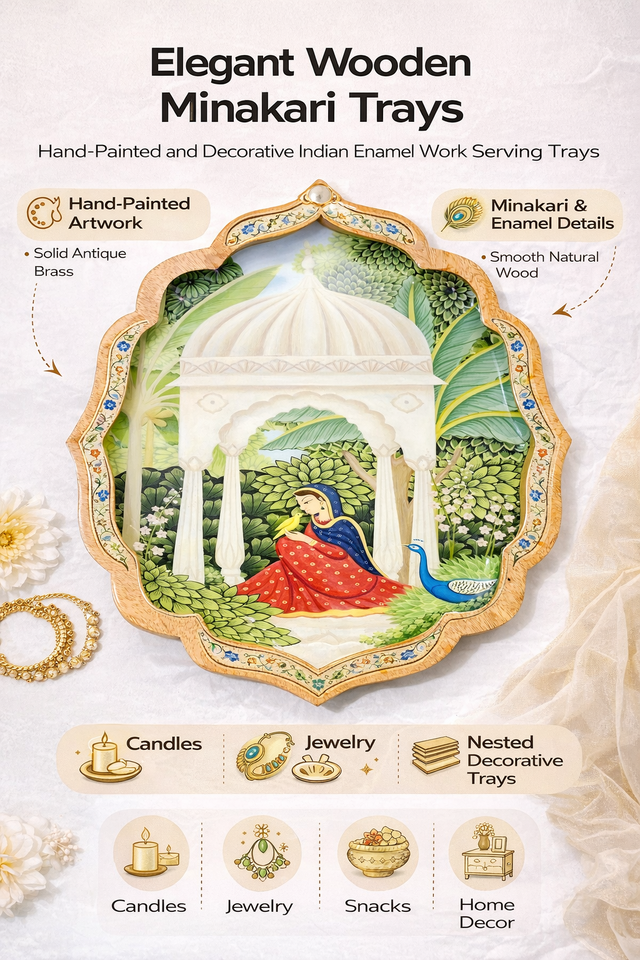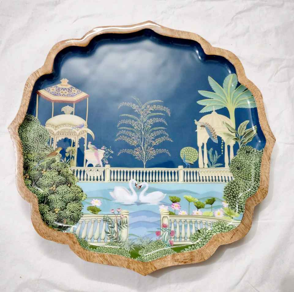 ถาดเซรามิกมินาคาริเพ้นท์ลายด้วยมือ พร้อมงานศิลปะจิ๋วแบบอินเดียดั้งเดิม ดีไซน์แนวชายฝั่ง สำหรับเสิร์ฟและตกแต่ง