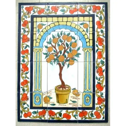 ภาพวาดมือเซรามิกสีส้มต้นไม้โมเสคผนังภาพจิตรกรรมฝาผนัง18 \ "x 24 \" กระเบื้องเซรามิก