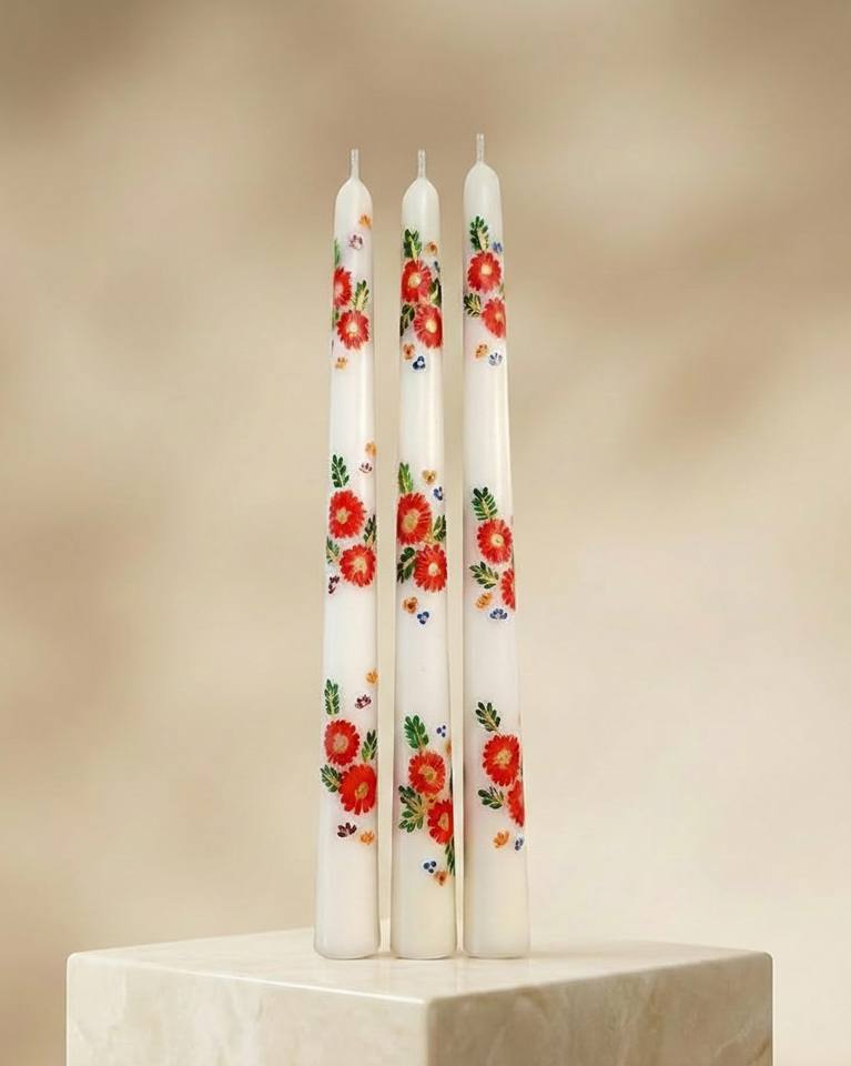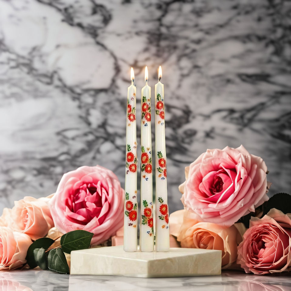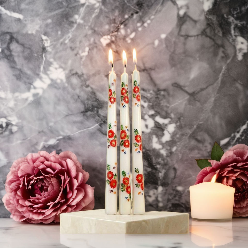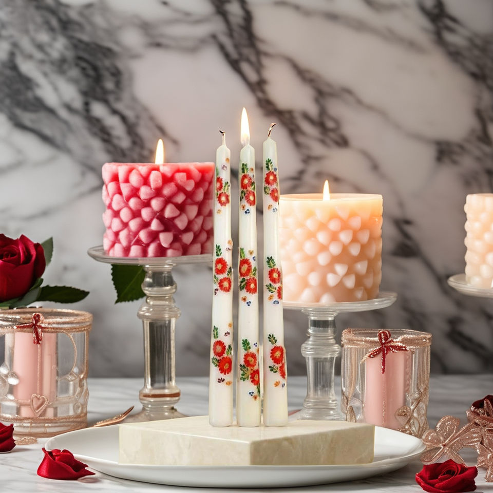 เทียนแท่งตกแต่งลายเพ้นท์มือ สีสันสดใส สำหรับตกแต่งบ้านสไตล์โมเดิร์น (ชุด 4 ชิ้น) สำหรับวันวาเลนไทน์และใช้เป็นเทียนบูชา