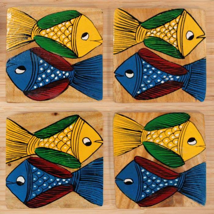 ที่รองแก้วไม้สี่เหลี่ยมสำหรับวาดรูปปลาขนาด3.5นิ้วสามารถนำกลับมาใช้ใหม่ได้