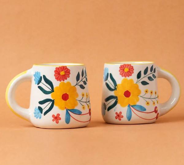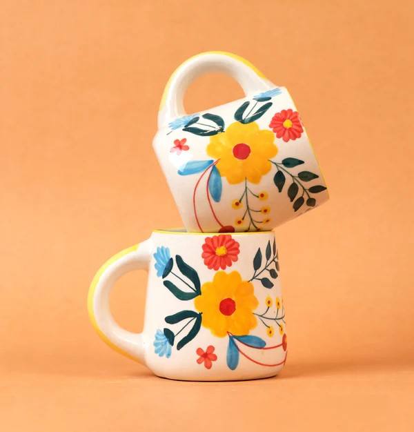 ชุดแก้วกาแฟเซรามิคลายดอกไม้เพ้นท์มือเคลือบเงา พร้อมหูจับถนัดมือ สำหรับใช้ในบ้าน ครัว ชา กาแฟ