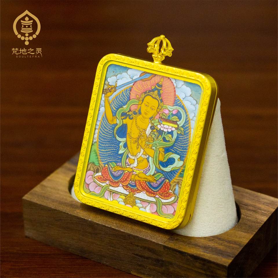 มือวาด Manjushri Thangka tibetan Plateau Master 24K แร่ทองพิกเมนต์ภูมิปัญญาศิลปะ bodhisattva ที่ราบสูง tibetan masters'
