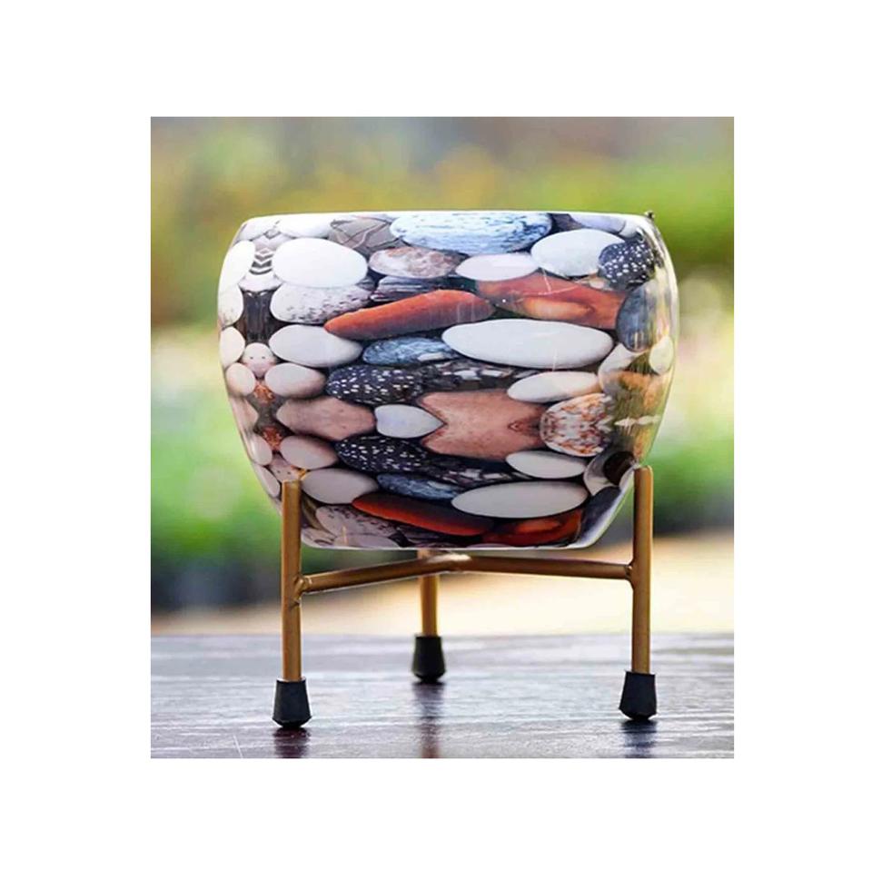 กระถางต้นไม้เหล็ก Meena ทาสีด้วยมือสําหรับตกแต่งบ้านหม้อ Meena ทรงกลมพร้อมขาตั้งมีจําหน่ายในปริมาณมาก