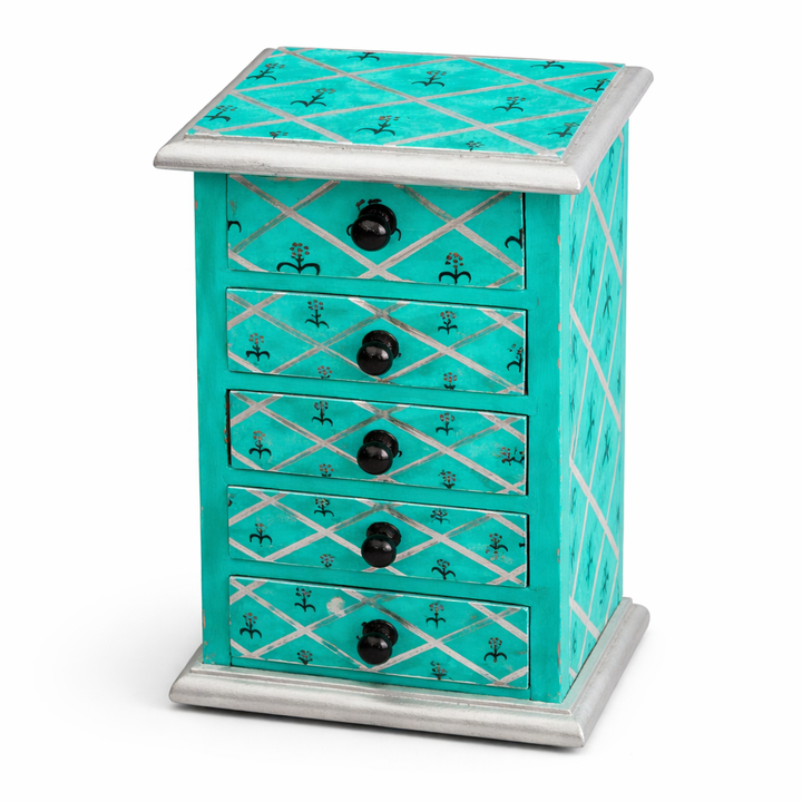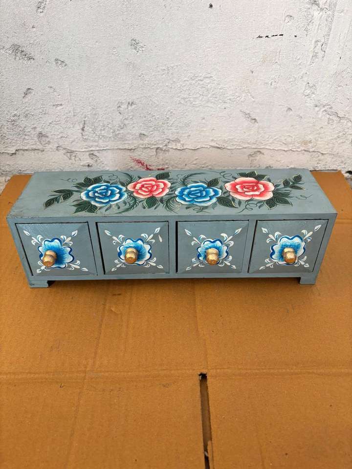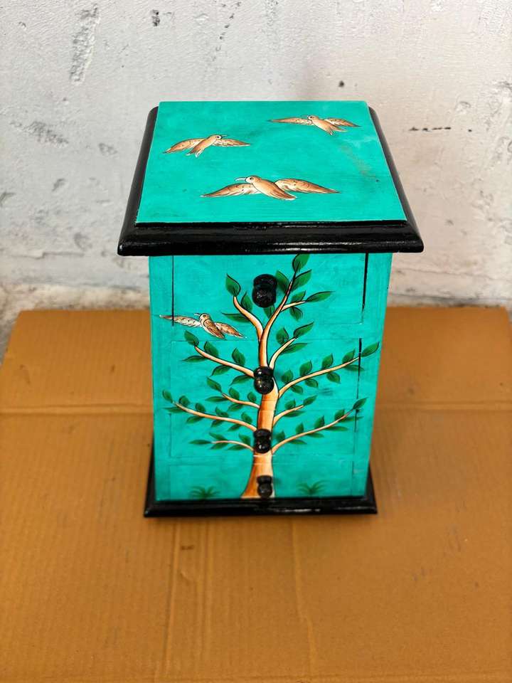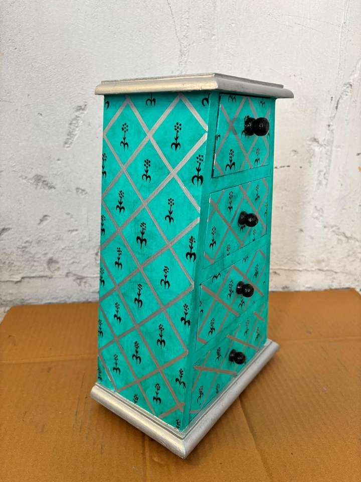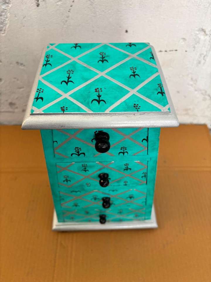 ตู้ลิ้นชักสองชั้นทำจากเส้นใยพืช วาดลายด้วยมือ กล่องเก็บของตกแต่งบ้าน ทำมือ สไตล์วินเทจ อเนกประสงค์ ของตกแต่งบ้าน