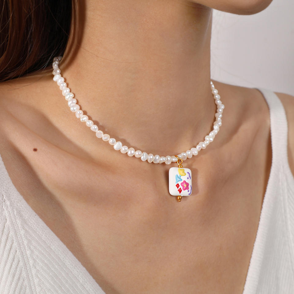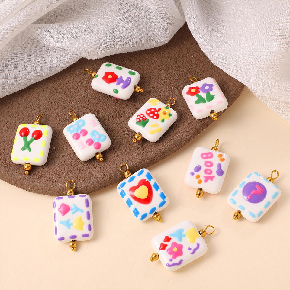 จี้รูปทรงสี่เหลี่ยมเพ้นท์ลายด้วยมือ ลายดอกไม้ ผลไม้ รูปเครื่องหมายคำถาม น่ารัก อุปกรณ์ทำเครื่องประดับ DIY สำหรับทำสร้อยคอ