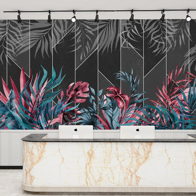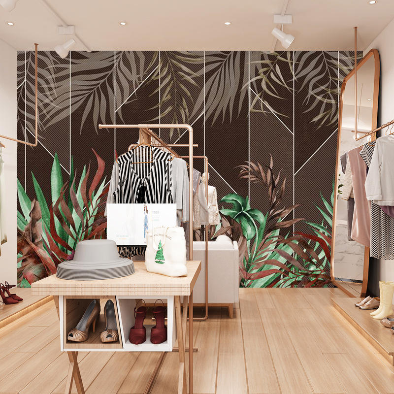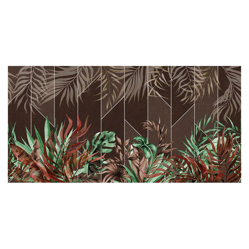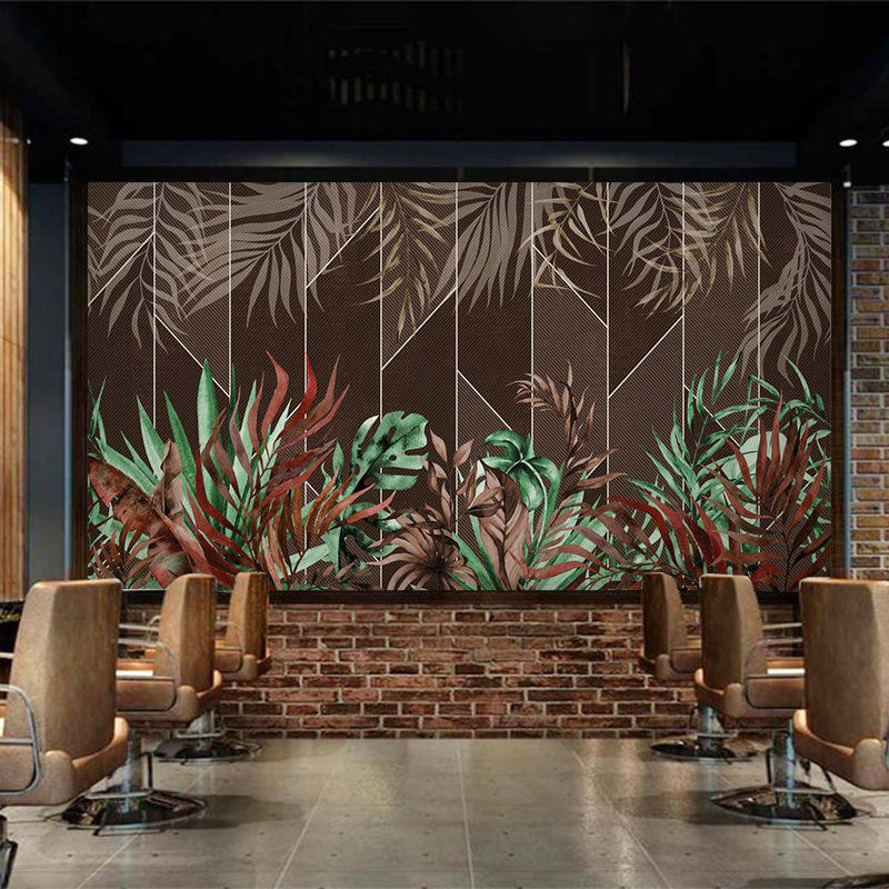 ผนังใบปาล์มป่าฝนเขตร้อนทาสีด้วยมือครอบคลุมร้านอาหารไทยเอเชียตะวันออกเฉียงใต้วอลล์เปเปอร์บาร์สไตล์ตั้งแคมป์