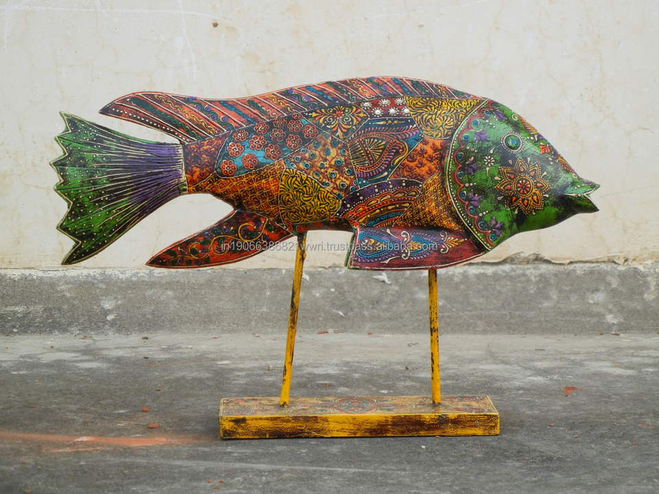 รูปปั้นปลาทำจากไม้ทาสีด้วยมือรูปปั้นสัตว์ที่มีเอกลักษณ์พร้อมขาตั้งสำหรับงานแต่งงานวันอีสเตอร์วันเกิดหรือของตกแต่งโรงเรียน