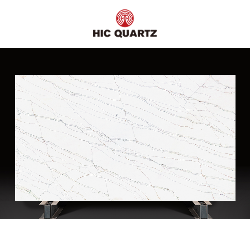 แผ่นหินควอทซ์เทียมขนาดใหญ่ขัดเงาด้วยมือโต๊ะเครื่องแป้งสีขาวระดับพรีเมี่ยมเคาน์เตอร์ห้องครัวสำหรับพื้นโรงแรม