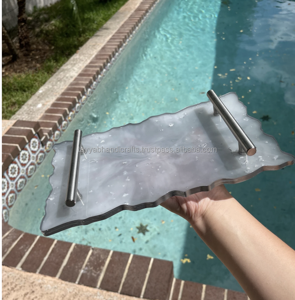 ถาดเสิร์ฟเรซินอีพ็อกซี่ทำด้วยมือวัสดุทองเหลืองและแก้วทรงกลมแบบศิลปะนามธรรมสำหรับรับประทานอาหารของตกแต่งบ้านชุดของขวัญพิเศษ