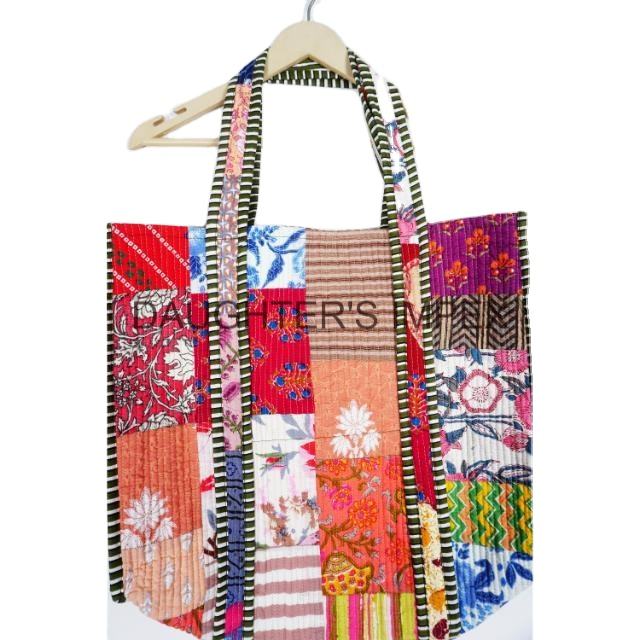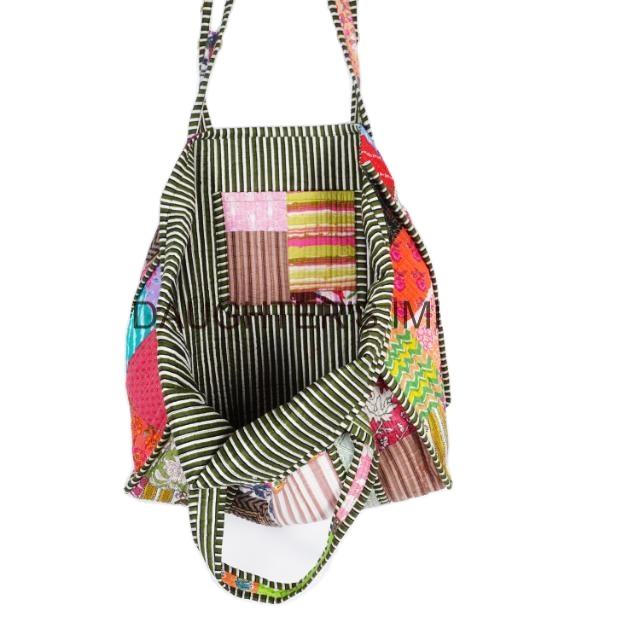 กระเป๋าผ้าคอตตอนหลากสีลายควิลท์มือ2ชิ้นกระเป๋าแฟชั่นโบฮีเมียนแนววินเทจ