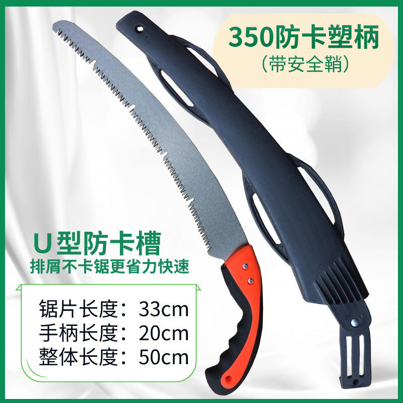 เลื่อยมือ 350 แบบป้องกันการติดขัด ด้ามจับพลาสติก ใบมีดเหล็กคาร์บอนสูง พร้อมกระเป๋า สีแดงและสีดำ เครื่องมือตัดกิ่งไม้ในสวน