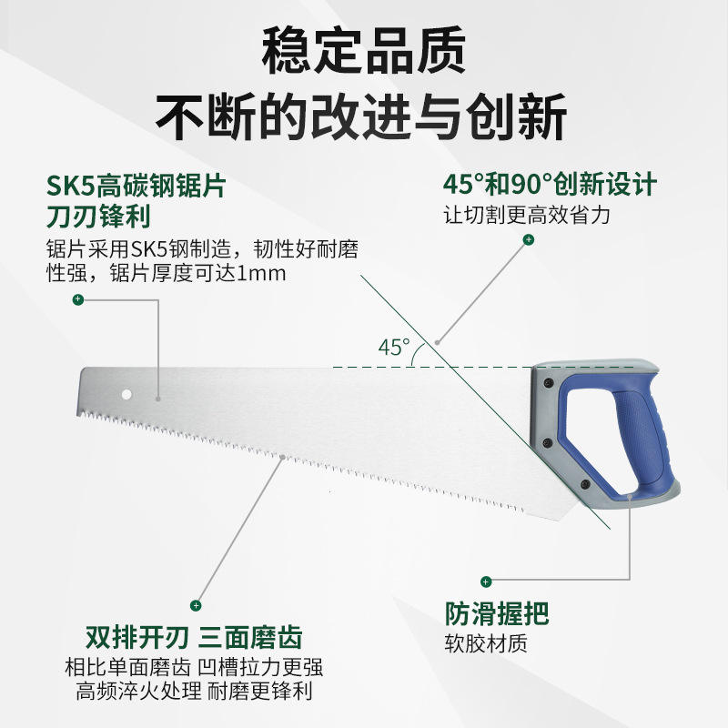 เลื่อยมือตัดไม้ ใบมีดเหล็ก 460 มม. ทนทานสำหรับการปรับปรุงบ้าน ใช้งานกลางแจ้ง