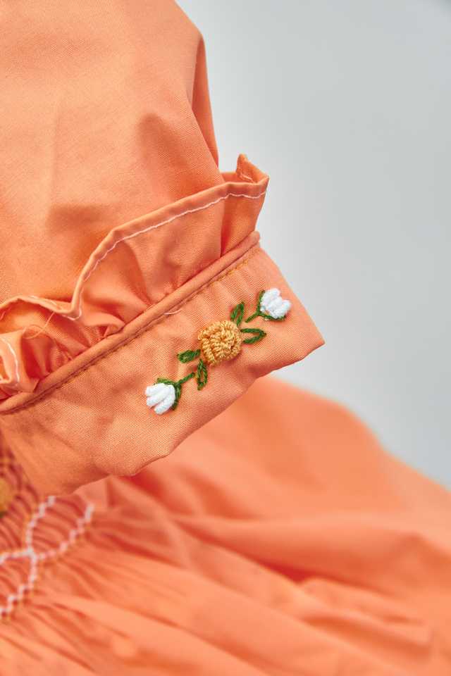 ชุดเดรสเด็กผู้หญิงปักลายดอกไม้ด้วยมือ | เดรสผ้าฝ้ายแขนพองสไตล์บูติก | ชุดเดรสสำหรับเด็กเล็ก ขายส่งแบบ OEM