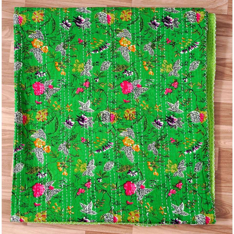 ผ้าห่มกันธาเย็บมือแบบสองด้าน คุณภาพสูง ลายดอกไม้พิมพ์บล็อก สวมใส่สบาย ผลิตจากผ้าฝ้าย 100% เป็นมิตรกับสิ่งแวดล้อม ใช้ได้ทุกฤดู