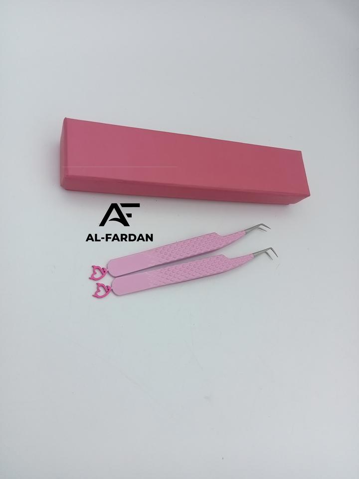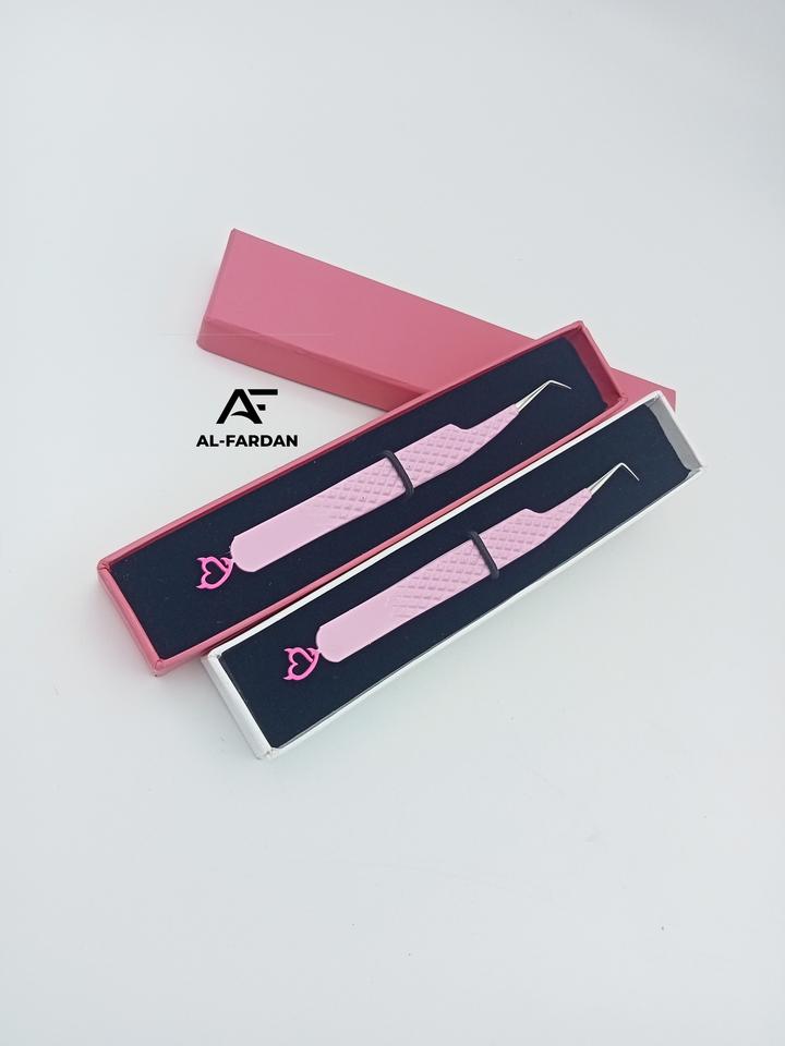 แหนบขนตาปลอมแบบใช้มือสีชมพูพร้อมรูปหัวใจอุปกรณ์ต่อขนตา90และ45องศาพร้อมกล่องใส่การ์ดแบบสั่งทำ