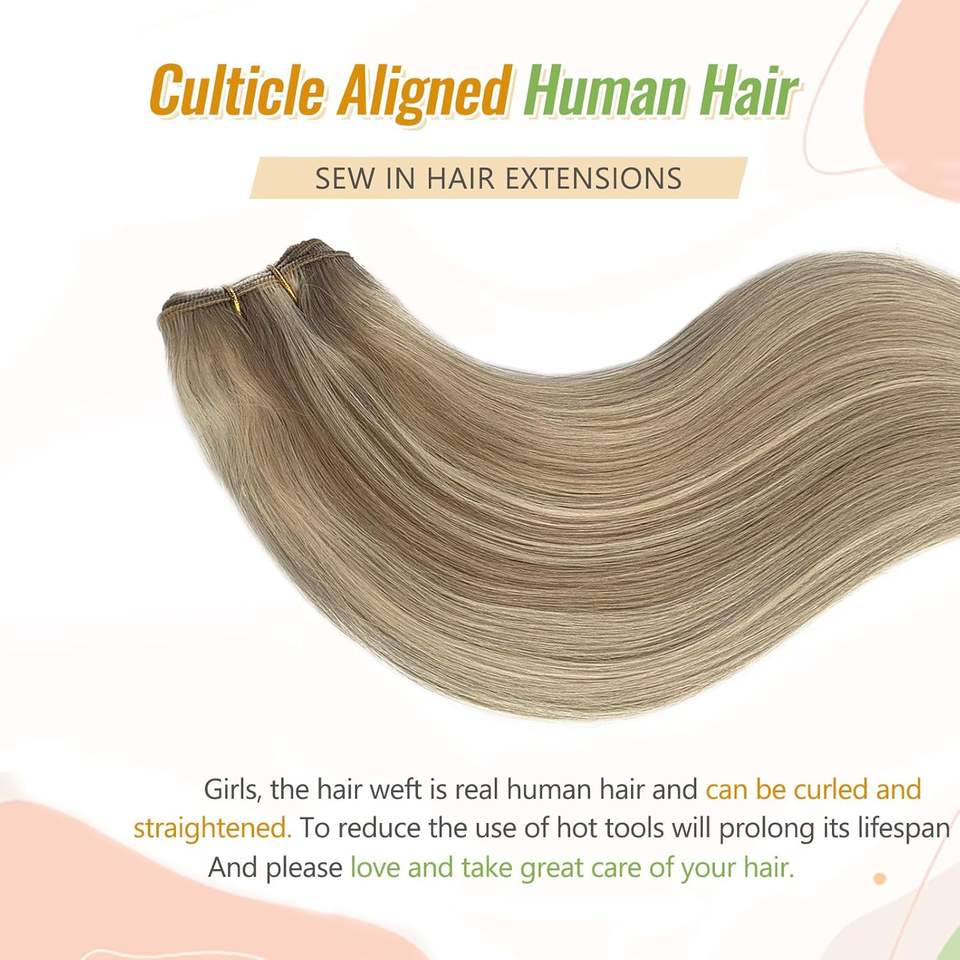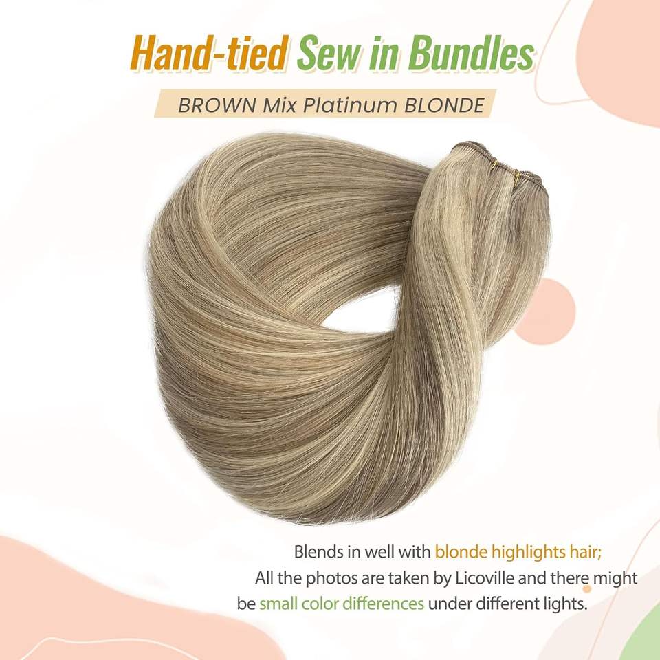 ผมต่อแบบเย็บมือจากผมแท้ 80 กรัม สีบลอนด์ประกายแพลตตินั่ม นุ่มตรง ไฮไลท์สีบลอนด์ผสม ขนาด 12 นิ้ว