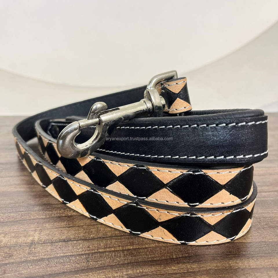 ชื่อผลิตภัณฑ์:สายจูงสัตว์เลี้ยงหนังลายตารางหมากรุกมือ