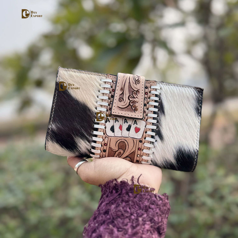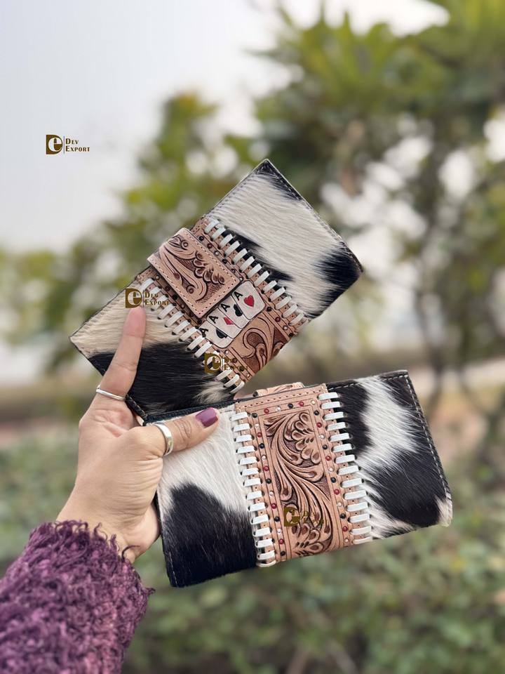 กระเป๋าสตางค์หนังวัวแท้ลายแกะสลักด้วยมือ กระเป๋าคลัทช์ใส่โทรศัพท์ กระเป๋าหนังสไตล์ตะวันตกอเนกประสงค์