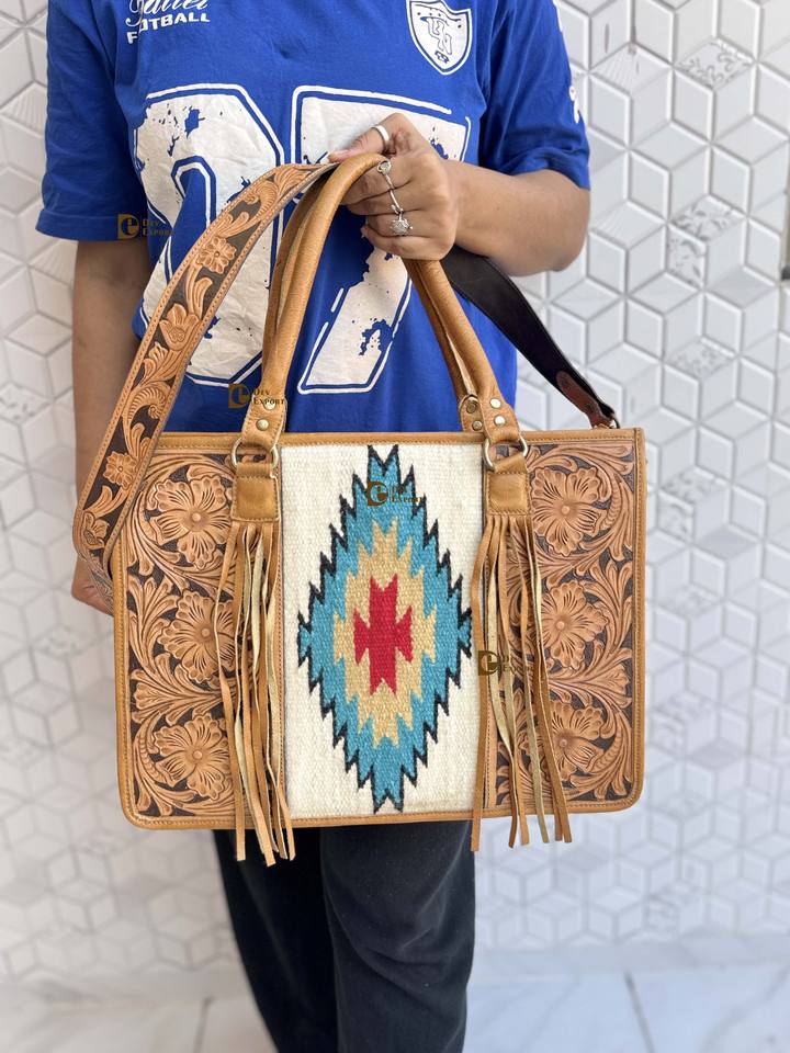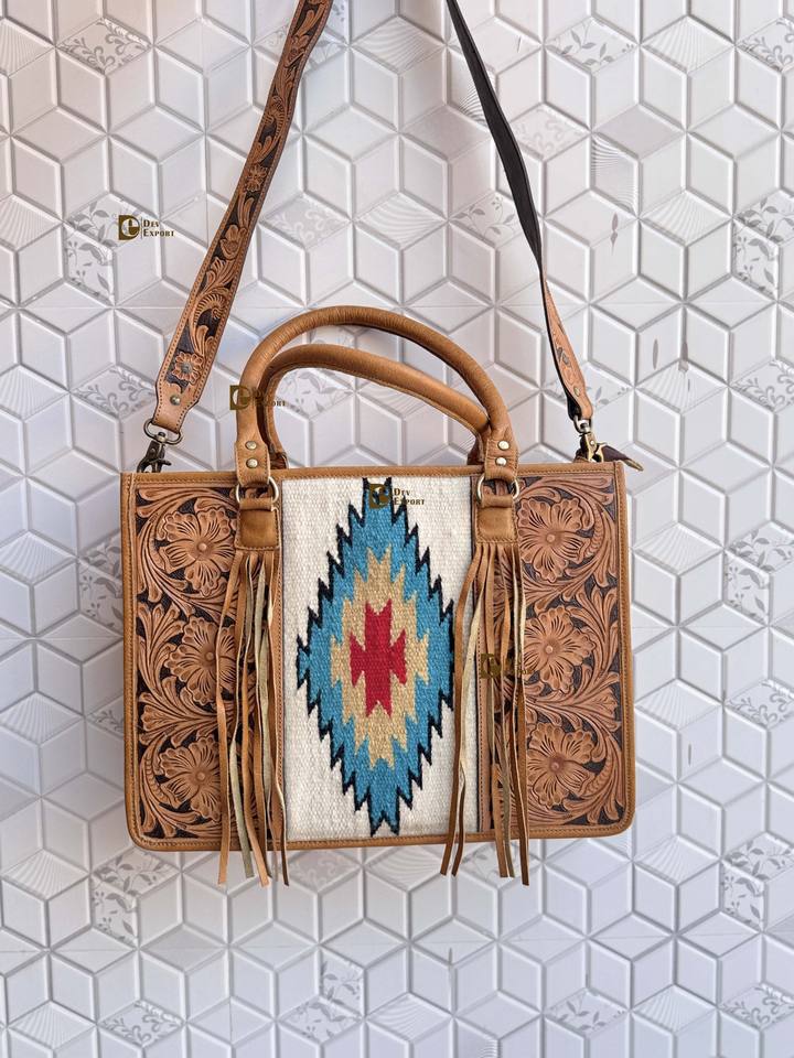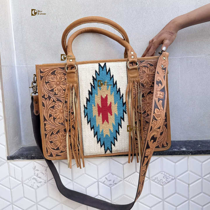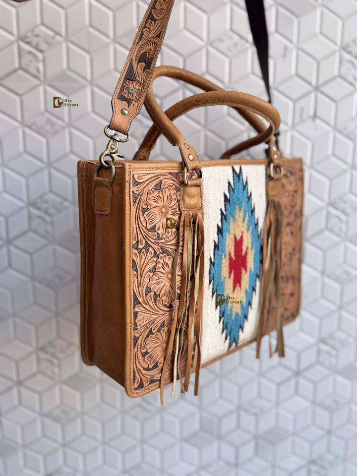 กระเป๋าถือหนังแกะสลักลายด้วยมือ กระเป๋าหนังทรงสวยเก๋ กระเป๋าหนังลายแจ็คการ์ดสำหรับผู้หญิงอเนกประสงค์