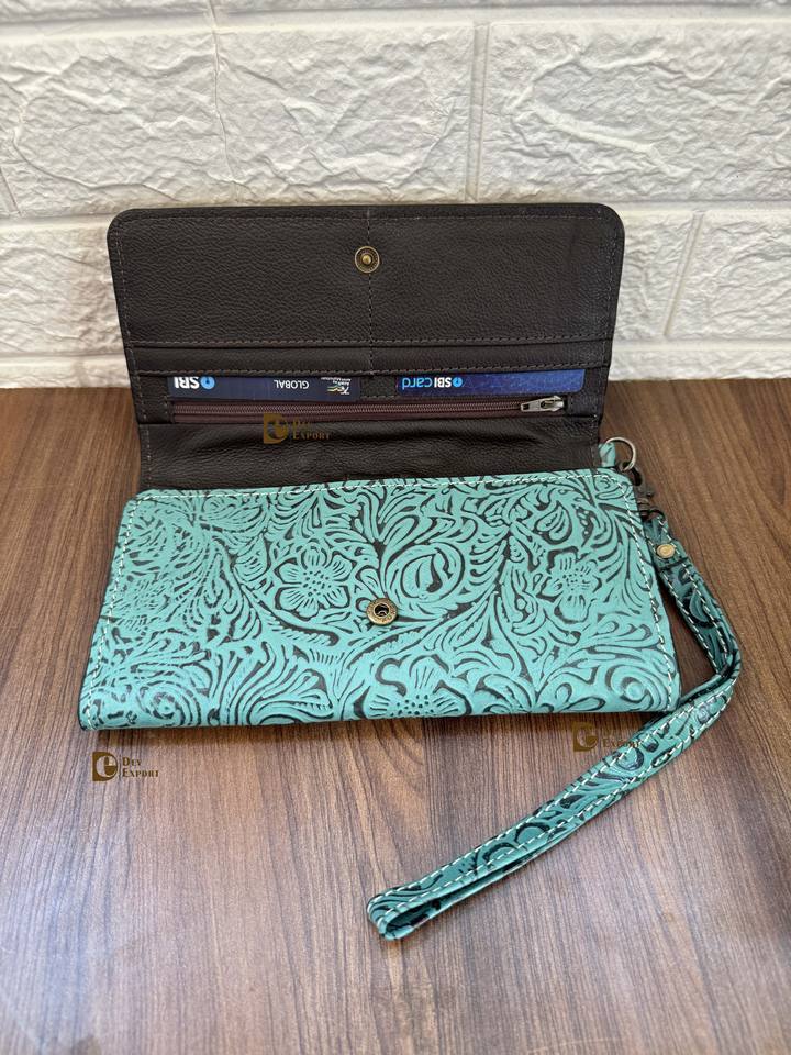 กระเป๋าสตางค์หนังแท้สำหรับผู้หญิง, กระเป๋าคลัทช์ใส่โทรศัพท์ใช้ได้หลากหลายสไตล์กระเป๋าสตางค์สีเทอร์ควอยซ์