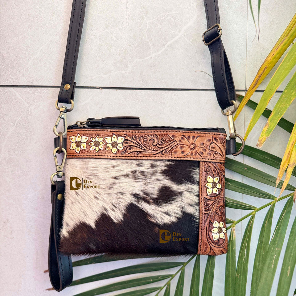 กระเป๋าถือมีซิปน้ำหนักเบาสำหรับทุกเพศ, กระเป๋าถือหนังวัวมีลายสไตล์ตะวันตกสลักด้วยมือ