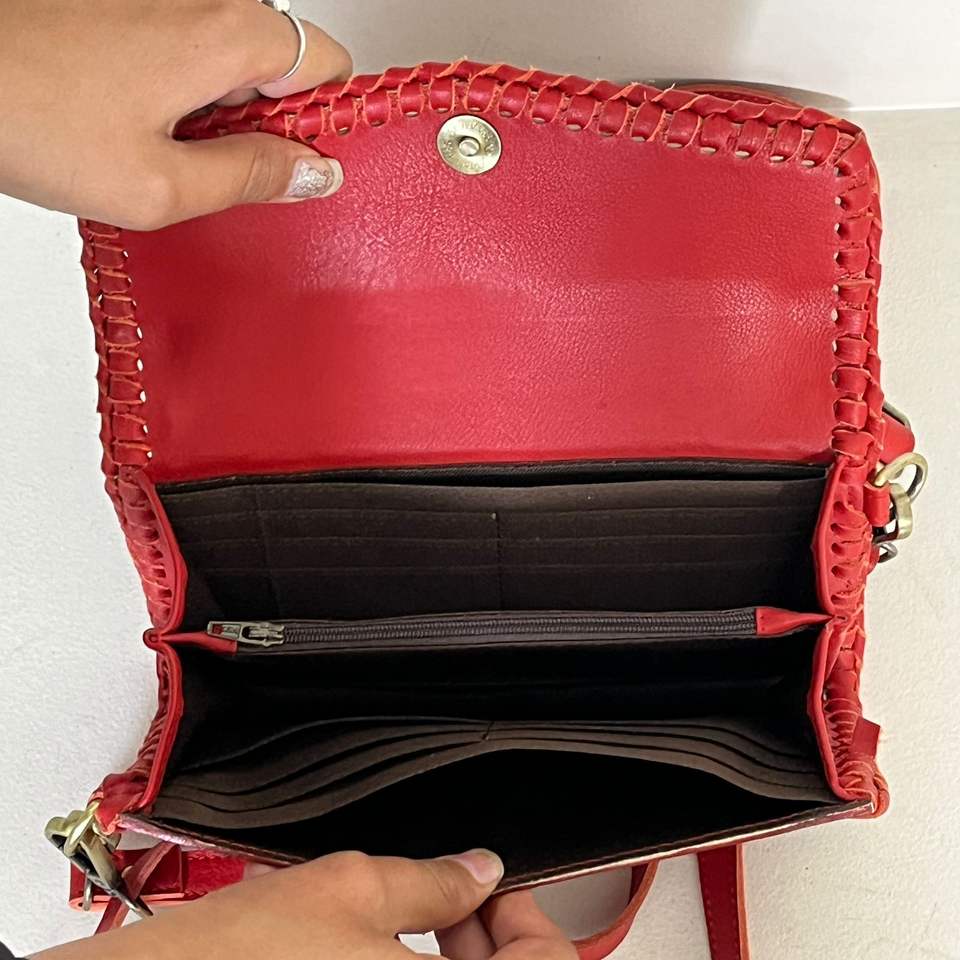 กระเป๋าสตางค์ยาวสะพายข้างหนังแท้ทำมือ