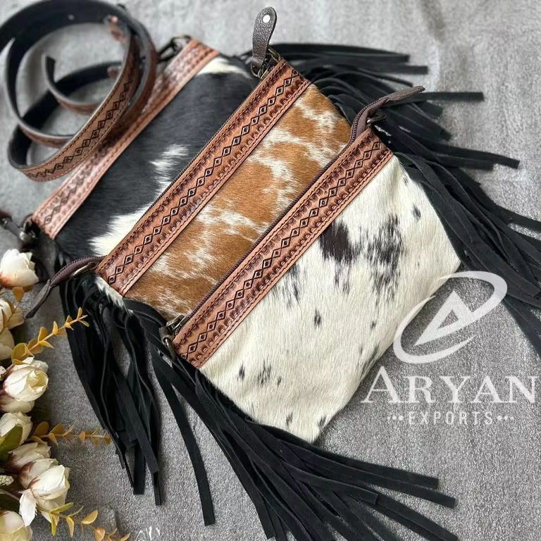 Product name:Hair On Tooled Leather Fringe Purse