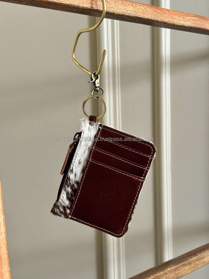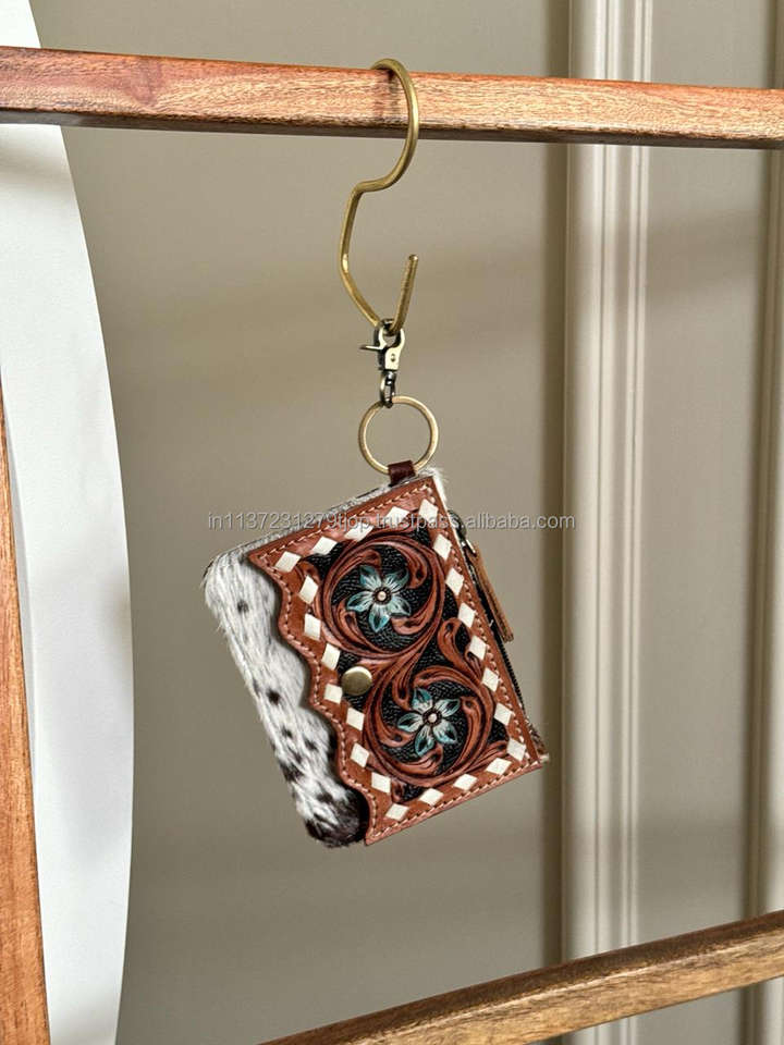 Hand Tooled Hair on Genuine Leather Western Women Coin Purse Cowhide Leather Zipper Coin Pouch Mini Credit Card Holder Wallet