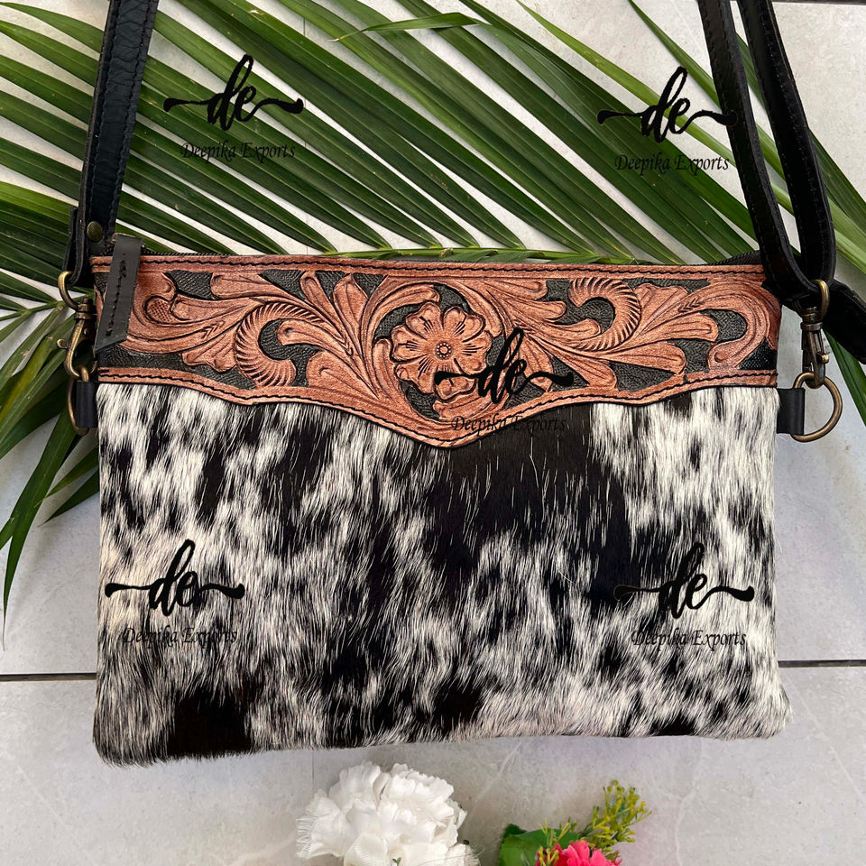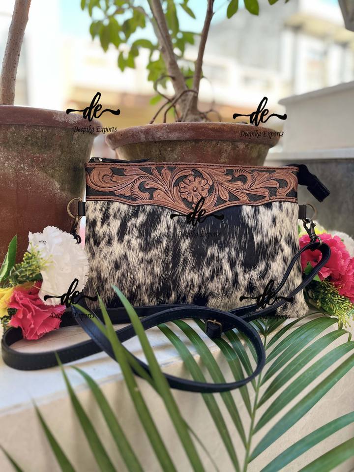 Hand Tooled Leather Handbag Real Cowhide Fur Sling Bag Carving Bohemian Bags Sling Hot Selling Bags for Women