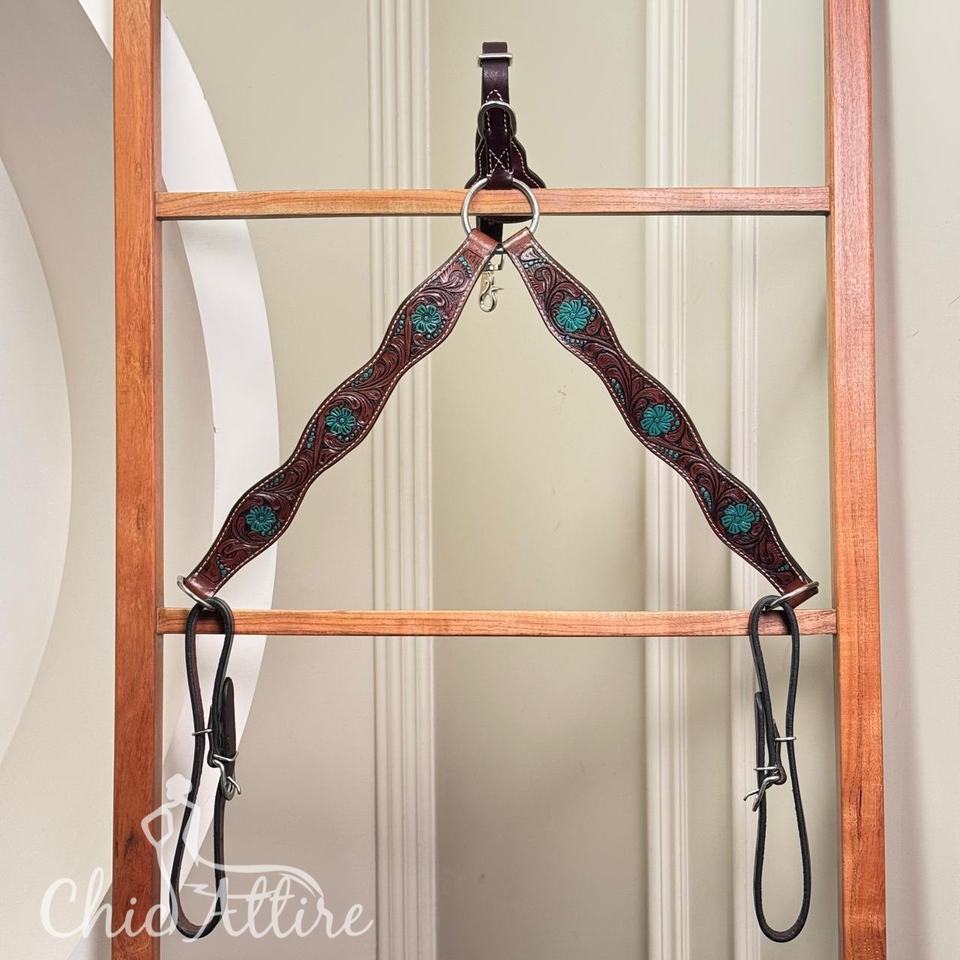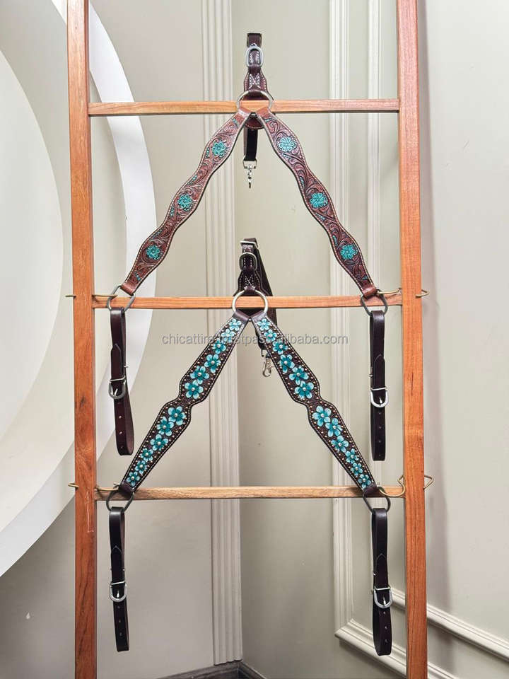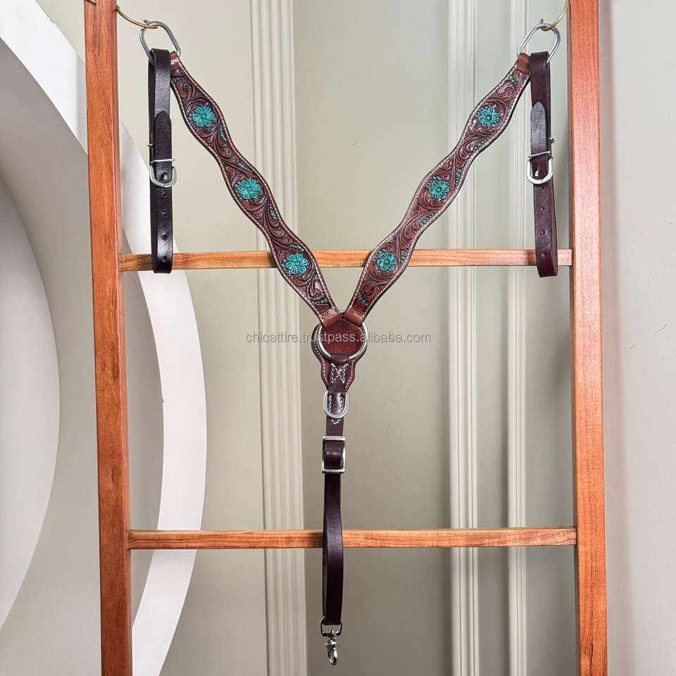 หนังหุ้มอกแบบตะวันตกพร้อมลายดอกไม้สีเขียวหัวเป็ดปรับได้สำหรับแข่งโรดีโอเทรลแรนช์และบาเรล