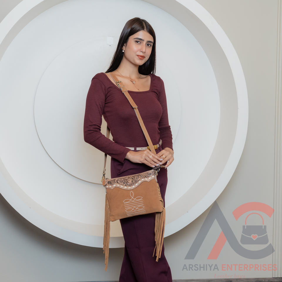 Product name:Hand Tooled Suede Leather Fringe Purse