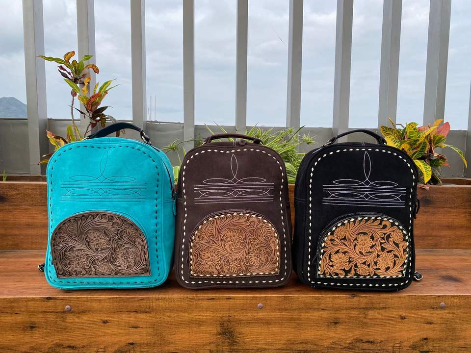 Type:Hand Tooled Suede Leather Backpack