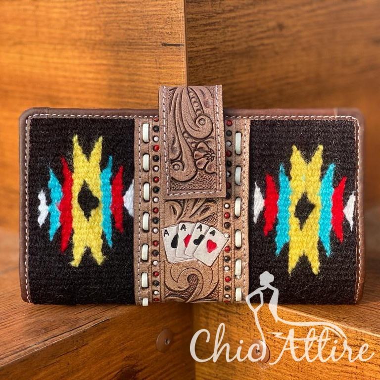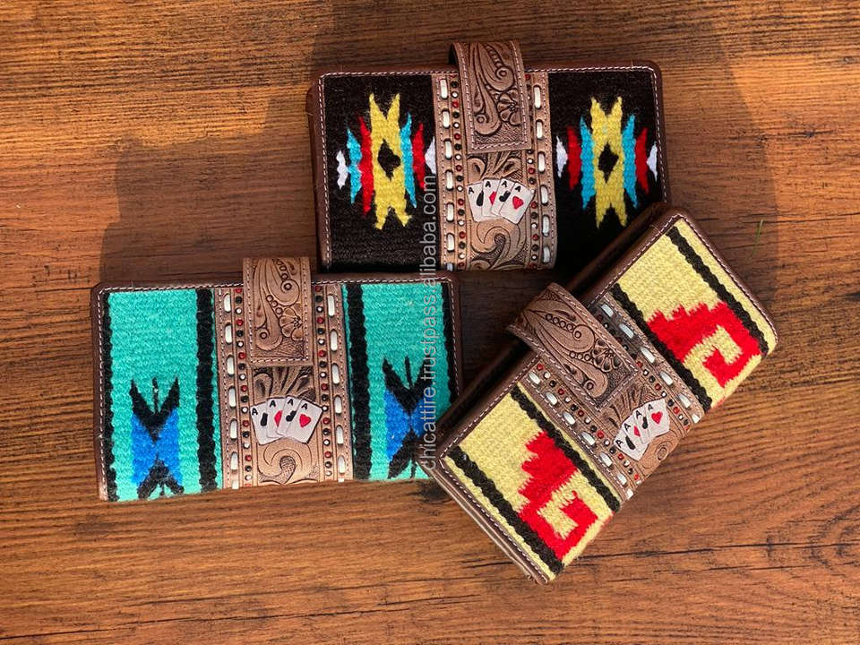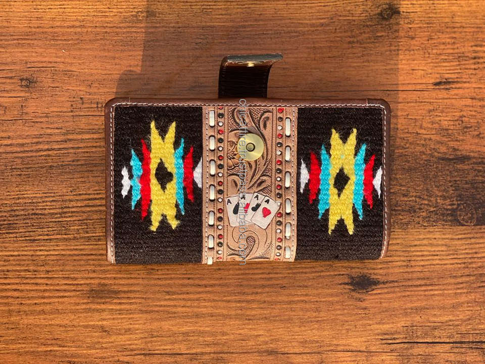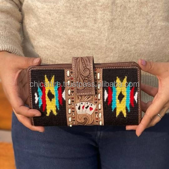กระเป๋าคลัทช์พับสองทบลายดอกไม้ทำจากหนังแท้สลักด้วยมือแบบตะวันตก