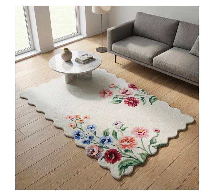 พรมขนสัตว์ลายดอกไม้ทอมือ ดีไซน์สวยงามทันสมัยสไตล์พฤกษศาสตร์ เหมาะสำหรับห้องนั่งเล่นและห้องนอน