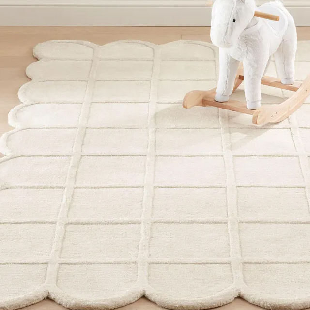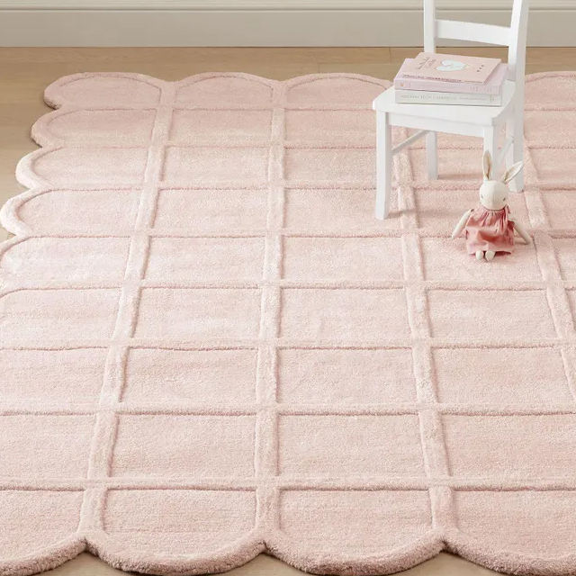 พรมขนสัตว์นิวซีแลนด์ถักมือ ลายตารางสีชมพูอ่อน สำหรับเด็กและห้องเด็กอ่อน เหมาะสำหรับห้องนอนและห้องเล่น